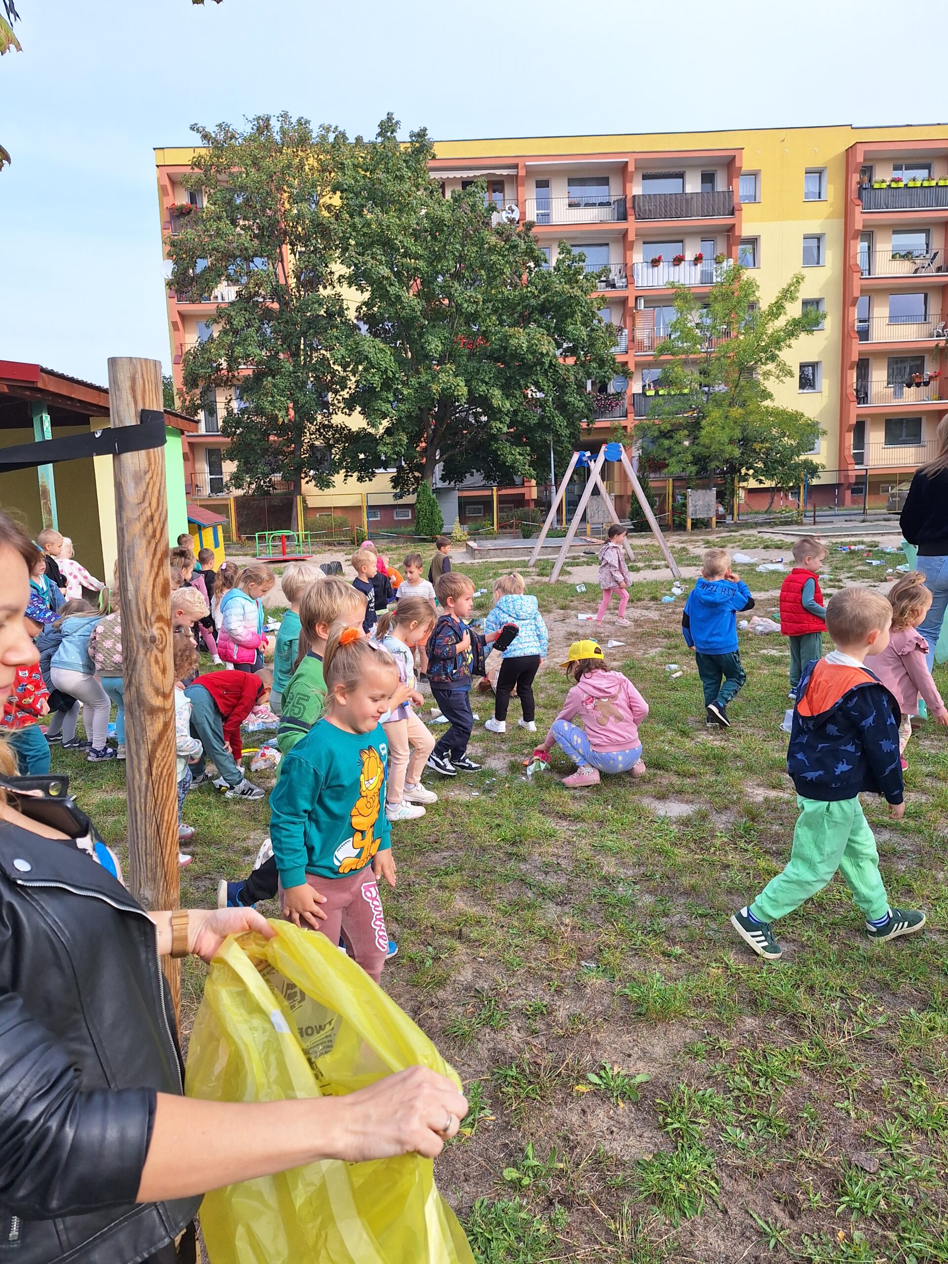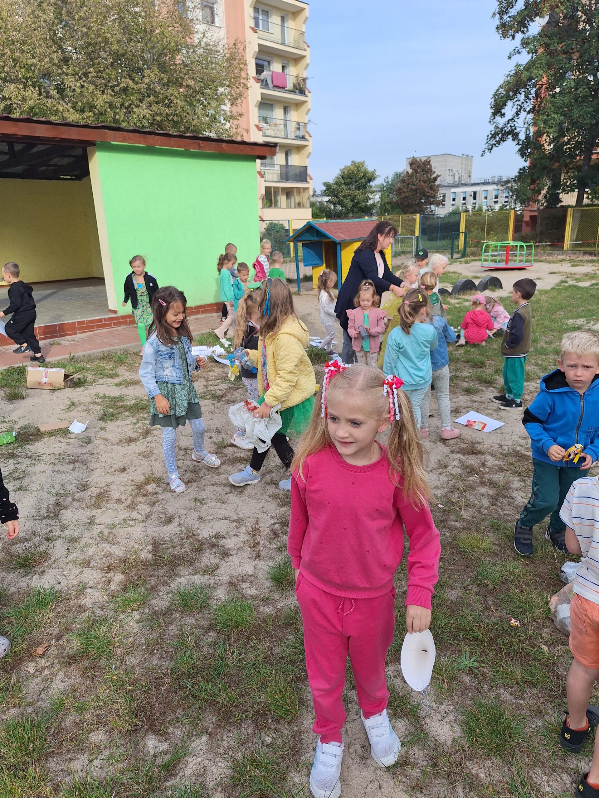 W poniedziałek 23 września 2024 roku, w naszym przedszkolu odbył się Dzień Sprzątania Świata. W wydarzeniu wzięły udział dzieci w wieku 4, 5 i 6 lat, które z wielkim entuzjazmem zaangażowały się w akcję. Najmłodsze maluszki z grupy 3-latków, chociaż nie mogły uczestniczyć w sprzątaniu na zewnątrz, obchodziły to święto w swojej Sali, ucząc się o dbaniu o środowisko poprzez zabawy i piosenki.