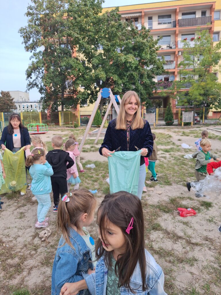 W trakcie sprzątania dzieci porządkowały teren wokół przedszkola – zbierały śmieci, segregowały je do odpowiednich pojemników i uczyły się, jak ważne jest dbanie o czystość otoczenia. Cała akcja przebiegła w miłej i radosnej atmosferze. Wspólnie śpiewaliśmy piosenki o przyrodzie, a nauczycielki przypominały, dlaczego tak ważne są tego typu działania.