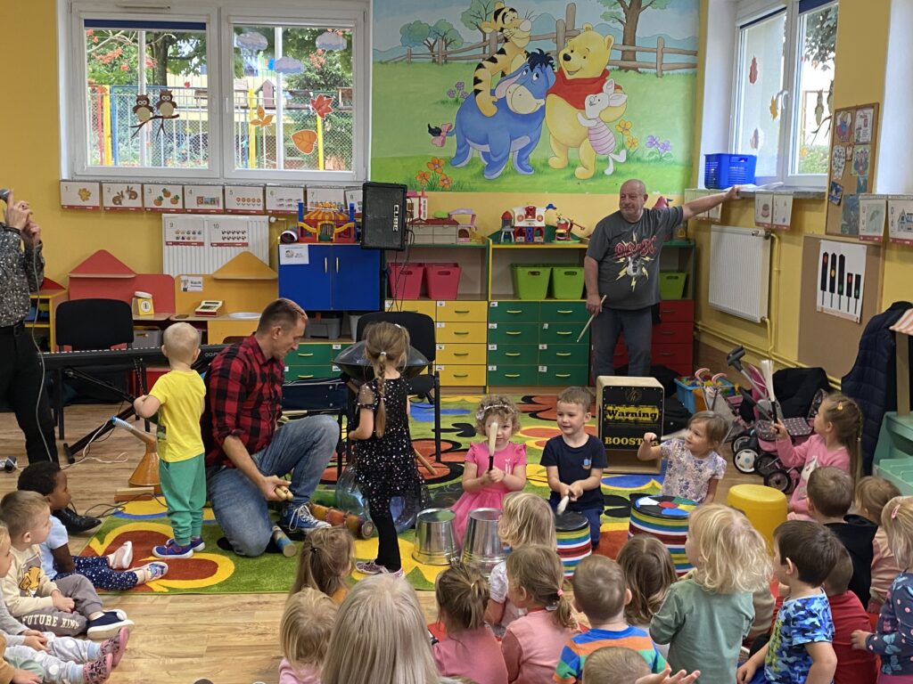 W naszym przedszkolu , co miesiąc dzieci uczestniczą w koncertach „Filharmonia”. Dzięki naszym gościom przedszkolaki przenoszą się w magiczny świat muzyki wsłuchując się w dźwięki nowo poznanych instrumentów: ukulele, saksofon, trąbka, kastaniety, grzechotki, talerze perkusyjne różnej wielkości czy bębny . Wspólny śpiew i zabawa wprawiają Ekoludki w radosny nastrój. Dziękujemy za tą niezwykłą podróż i czekamy z niecierpliwością na kolejne spotkanie!